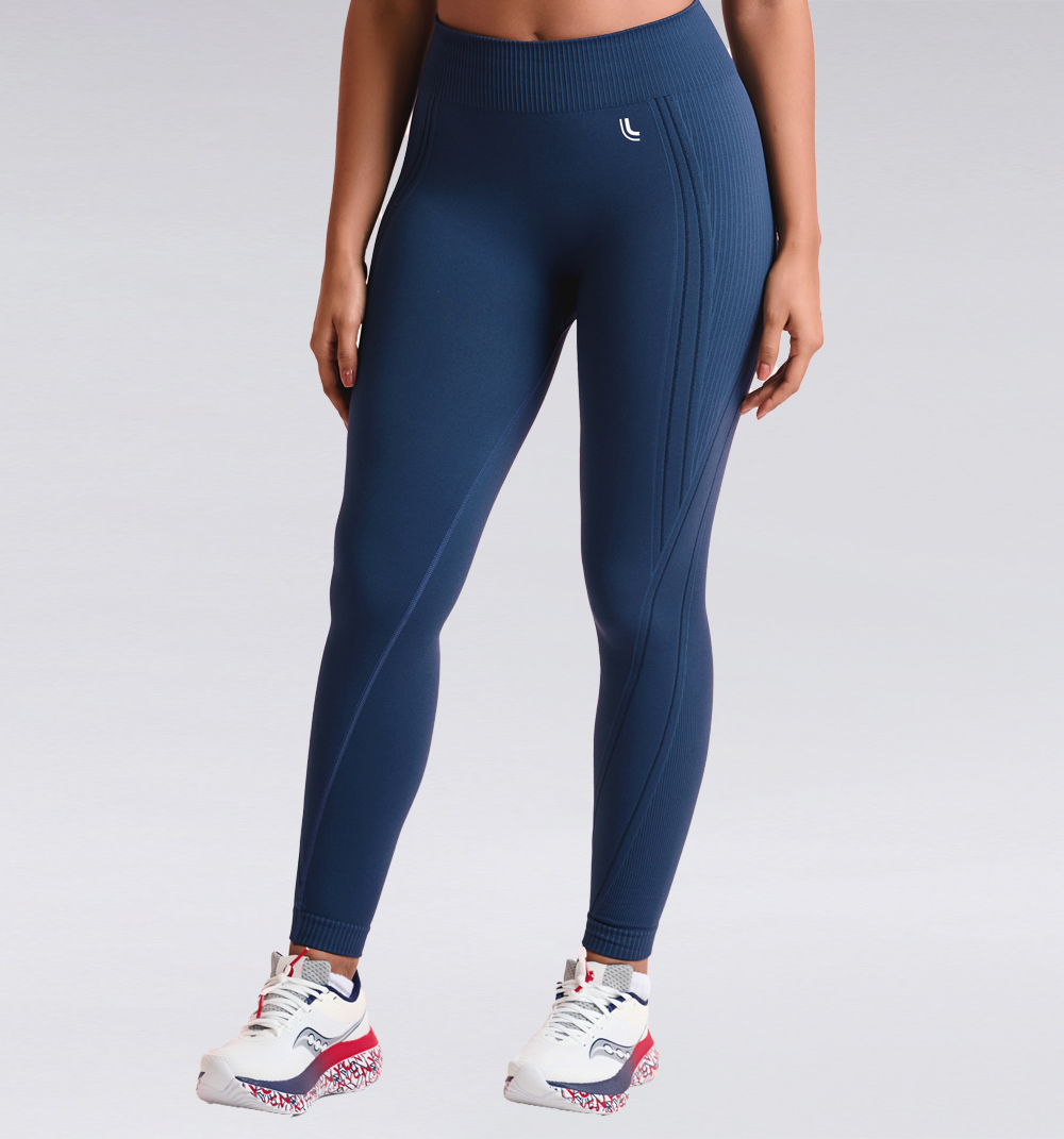 - La cintura es de media a alta, con detalles en relieve en los laterales que forman líneas verticales y diagonales, lo que le da más estilo, y puños acanalados que proporcionan mayor adherencia a las piernas.