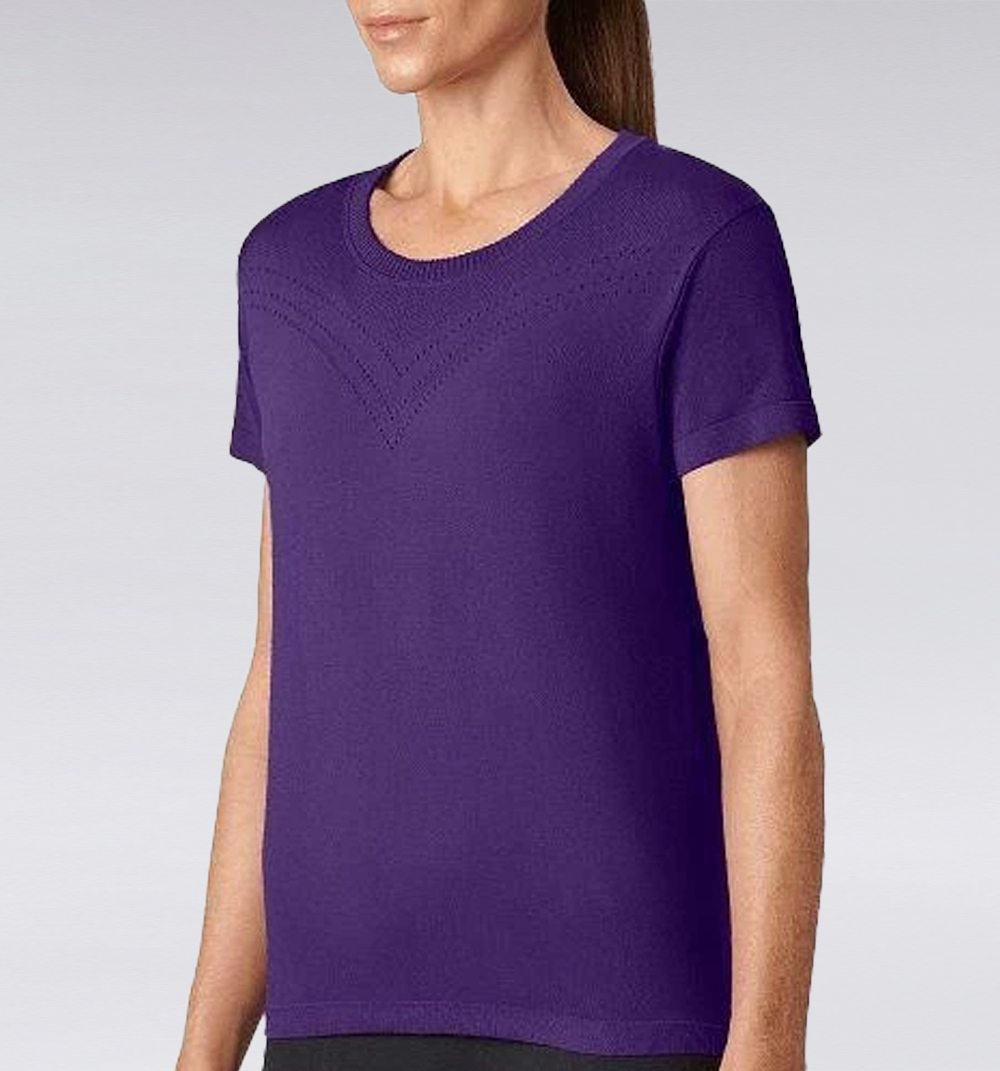 - Manga corta, cuello redondo.