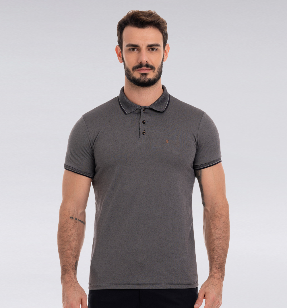 - Cuello tipo polo clásico, tejido plano, sin ribetes de contraste